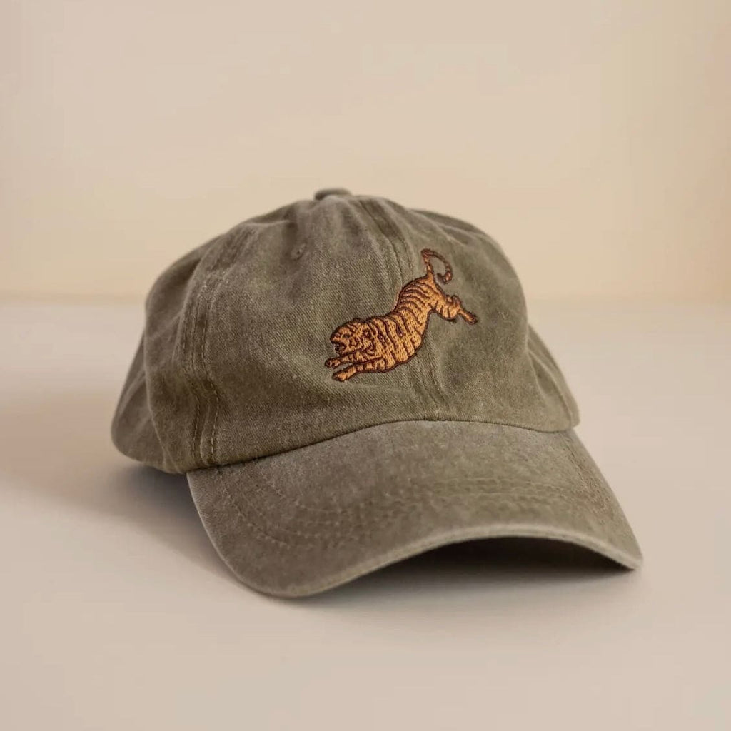 Embrace jungle vibes with this tiger embroidered cap.  Whether you're on a hike or exploring the city streets, this hat is sure to make a statement. Elevate your headwear collection with this unique blend of nature-inspired embroidery and contemporary design.